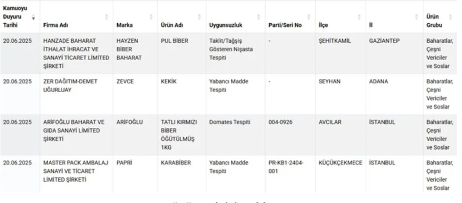 Listeye eklenen dört baharat ürünüyse şunlar: