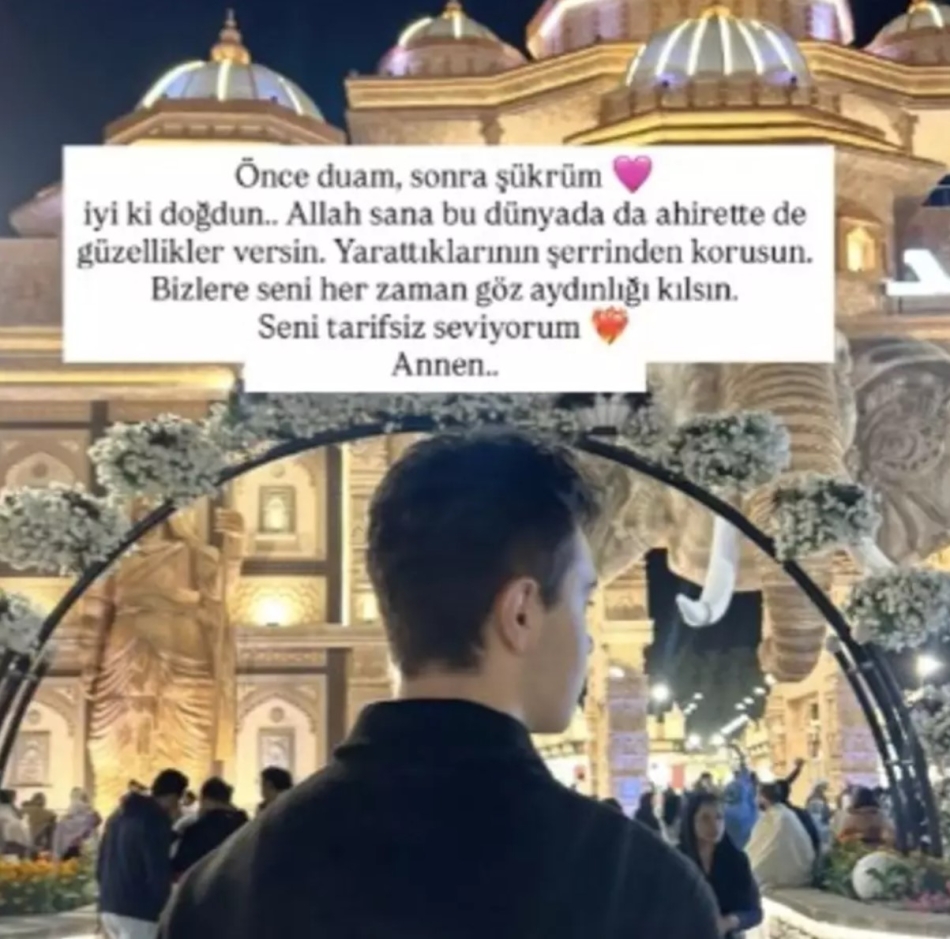 "Önce duam, sonra şükrüm. İyi ki doğdun… Allah sana bu dünyada da ahirette de güzellikler versin. Yarattıklarının şerrinden korusun. Bizlere seni her zaman göz aydınlığı kılsın. Seni tarifsiz seviyorum annen."