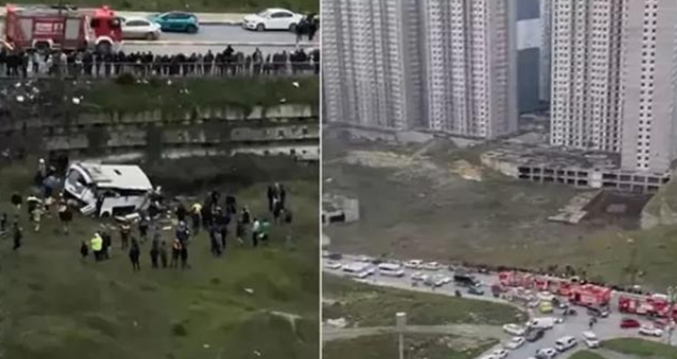 BÖLGEDEN İLK GÖRÜNTÜLER Yaşanan kaza sonrası bölgeden ilk görüntüler geldi. VALİLİKTEN AÇIKLAMA İstanbul Valiliği'nden yapılan yazılı açıklamada " Esenyurt İlçesi Yeşilkent Mahallesi Nazım Hikmet Bulvarı üzerinde seyir halinde bulunan bir servis minibüsü yağıştan dolayı boş araziye devrilmiştir.