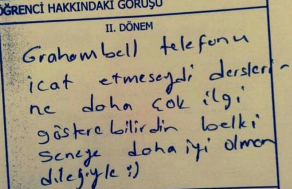 Bu yazımızda sizlere öğretmenlerin öğrencilerinin karnelerine yazdığı notları paylaşacağız. sosyal medyada en çok okunanlar arasına giren karne notlarını görünce sizde çok şaşıracaksınız.Ne diyeceğimi bilemiyorum. Allah ıslah etsin. • Telefonun iPhone 6 derse ilgin Nokia 3310. • Elimizden geldiği kadar ilgileniyoruz ama çocuğun hiç olma kapasitesi yok. • Seni geçirmek için verdiğimiz uğraşla, Türkiye sınırına Çin seddini yeniden yapardık.