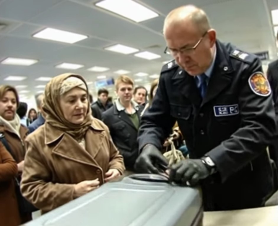 Yaşlı bir kadının bagaj kontrolü sırasında